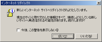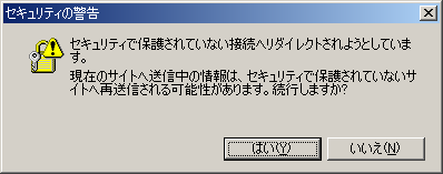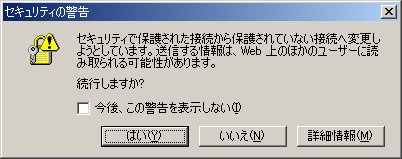 セキュリティで保護されているページからそうではないサイトへ移動する際に、