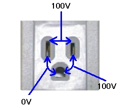 ライブにはニュートラルとの間に100Vの電圧がかかっているので、ライブ―アース間は100Vである。