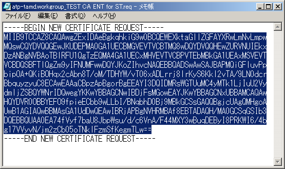 17. 証明書サービスを使用した証明書要求の送信に従って、証明書を要求します。エンコード証明書要求は2手順前のファイルの内容です。