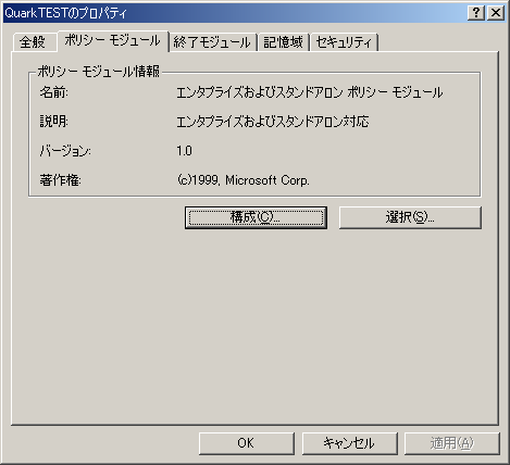 3. [ポリシーモジュール]タブを開き、[構成]をクリックします。