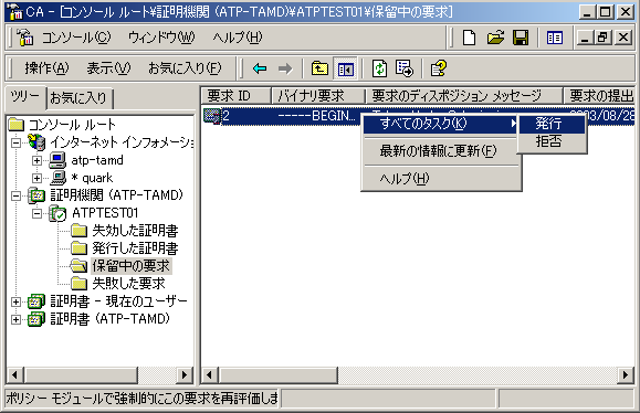 証明書要求を承認するには、証明書サービス MMC を使用して、手動で要求を承認する必要があります。