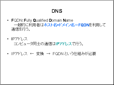一般的に利用者はホスト名+ドメイン名からなるFQDNを利用して通信を行います。