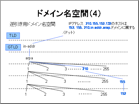 IPアドレス 210.155.152.132のホストは152. 155. 210.in-addr.arap.ドメインになります。