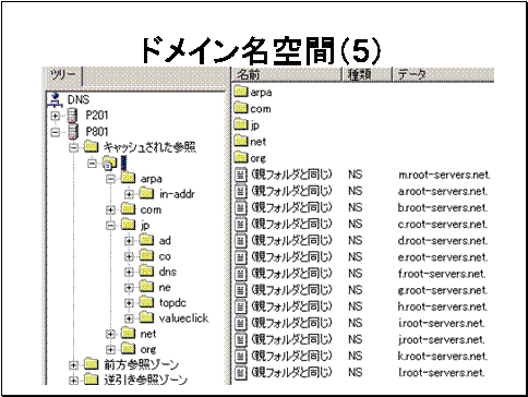 実際にLANで使用しいるDNSサーバでドメイン名空間の階層構造が確認できます。