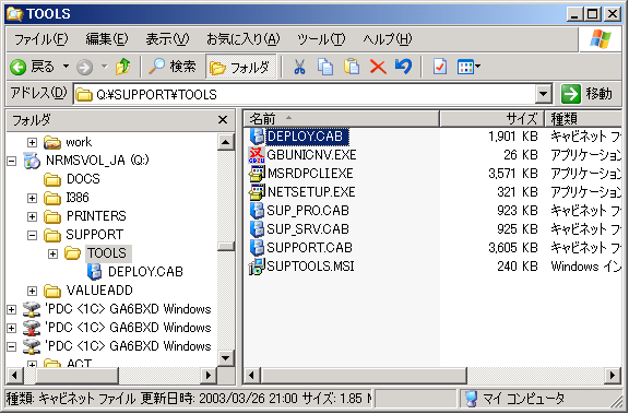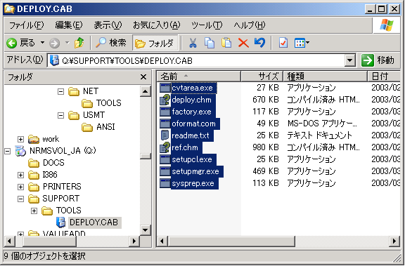 Windows のインストールCD-ROM内のSUPPORT−TOOLS−deploy.cabをダブルクリック展開する。