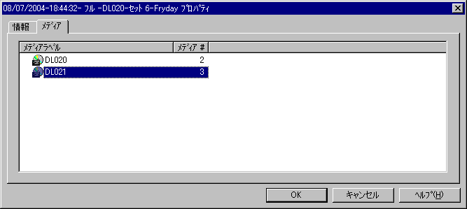 Backup Execにて、リストアカタログから媒体のプロパティを見ると、3本目のテープに3/3がいることが表示されている。