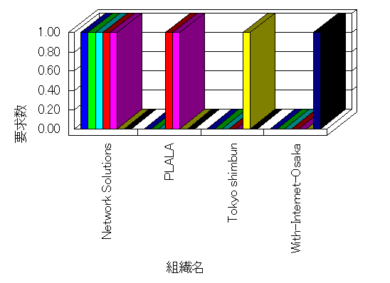 要求コンテンツの取得が正常に行われた任意のヒット です。ヒットと違って、要求はコンテンツとユーザーの挙動に関係しています。例えば、ユーザーがある HTML ページを要求して、そのページが 3 つのイメージを含む場合、Web サーバーは要求されたページの他に、そのページが含む 3 つのイメージ ファイル、およびいくつかの他の要素もログに付け加えるかもしれませんが、Analysis はこれらをあわせて 1 つのユーザーからの要求としてカウントします。
