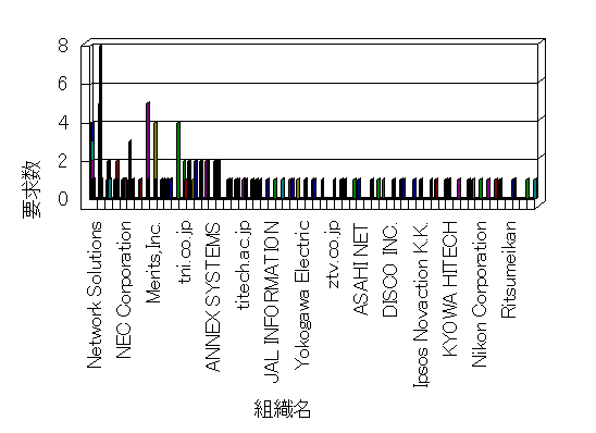 組織ユーザーにインターネット接続を提供する、商用または非営利団体、学術・行政機関などの、インターネット ドメイン で識別される団体や組織です。Microsoft Site Server Analysis は同じ組織に登録されたすべてのドメインを 1 つの組織としてグループ化します。ドメインがデータベースで使用できない場合は、1 つのインターネット ドメインが 1 つの組織を識別するのに使用されます。