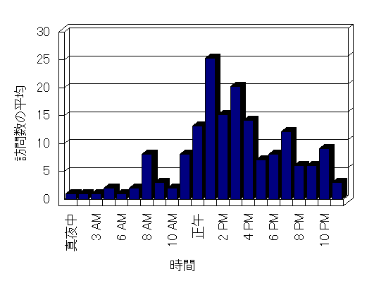 要求数と訪問数の平均と、訪問あたりの要求数の平均を時刻ごとに示します。