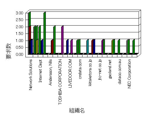 組織ユーザーにインターネット接続を提供する、商用または非営利団体、学術・行政機関などの、インターネット ドメイン で識別される団体や組織です。Microsoft Site Server Analysis は同じ組織に登録されたすべてのドメインを 1 つの組織としてグループ化します。ドメインがデータベースで使用できない場合は、1 つのインターネット ドメインが 1 つの組織を識別するのに使用されます。