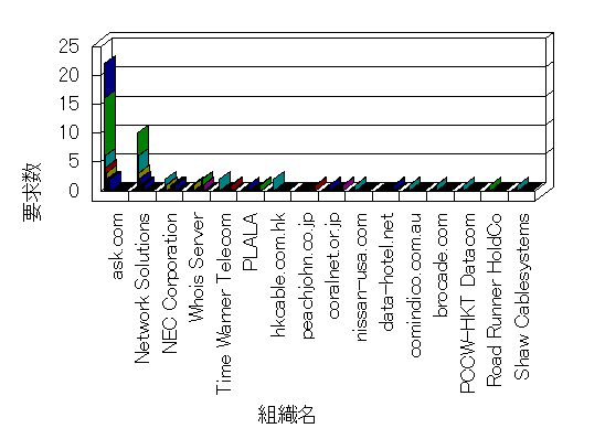 組織ユーザーにインターネット接続を提供する、商用または非営利団体、学術・行政機関などの、インターネット ドメイン で識別される団体や組織です。Microsoft Site Server Analysis は同じ組織に登録されたすべてのドメインを 1 つの組織としてグループ化します。ドメインがデータベースで使用できない場合は、1 つのインターネット ドメインが 1 つの組織を識別するのに使用されます。