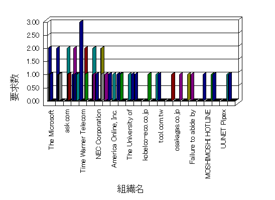 組織ユーザーにインターネット接続を提供する、商用または非営利団体、学術・行政機関などの、インターネット ドメイン で識別される団体や組織です。Microsoft Site Server Analysis は同じ組織に登録されたすべてのドメインを 1 つの組織としてグループ化します。ドメインがデータベースで使用できない場合は、1 つのインターネット ドメインが 1 つの組織を識別するのに使用されます。