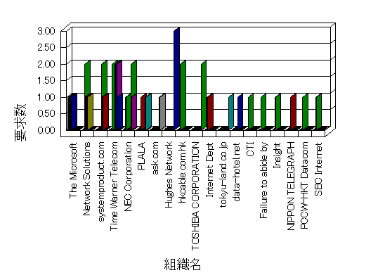 組織ユーザーにインターネット接続を提供する、商用または非営利団体、学術・行政機関などの、インターネット ドメイン で識別される団体や組織です。Microsoft Site Server Analysis は同じ組織に登録されたすべてのドメインを 1 つの組織としてグループ化します。ドメインがデータベースで使用できない場合は、1 つのインターネット ドメインが 1 つの組織を識別するのに使用されます。