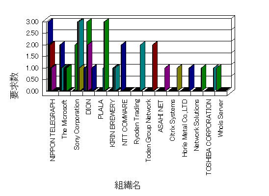 組織ユーザーにインターネット接続を提供する、商用または非営利団体、学術・行政機関などの、インターネット ドメイン で識別される団体や組織です。Microsoft Site Server Analysis は同じ組織に登録されたすべてのドメインを 1 つの組織としてグループ化します。ドメインがデータベースで使用できない場合は、1 つのインターネット ドメインが 1 つの組織を識別するのに使用されます。