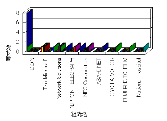 組織ユーザーにインターネット接続を提供する、商用または非営利団体、学術・行政機関などの、インターネット ドメイン で識別される団体や組織です。Microsoft Site Server Analysis は同じ組織に登録されたすべてのドメインを 1 つの組織としてグループ化します。ドメインがデータベースで使用できない場合は、1 つのインターネット ドメインが 1 つの組織を識別するのに使用されます。