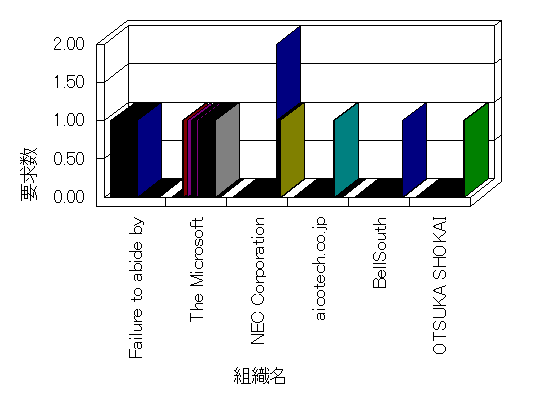 組織ユーザーにインターネット接続を提供する、商用または非営利団体、学術・行政機関などの、インターネット ドメイン で識別される団体や組織です。Microsoft Site Server Analysis は同じ組織に登録されたすべてのドメインを 1 つの組織としてグループ化します。ドメインがデータベースで使用できない場合は、1 つのインターネット ドメインが 1 つの組織を識別するのに使用されます。