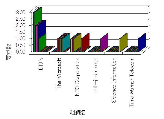 組織ユーザーにインターネット接続を提供する、商用または非営利団体、学術・行政機関などの、インターネット ドメイン で識別される団体や組織です。Microsoft Site Server Analysis は同じ組織に登録されたすべてのドメインを 1 つの組織としてグループ化します。ドメインがデータベースで使用できない場合は、1 つのインターネット ドメインが 1 つの組織を識別するのに使用されます。