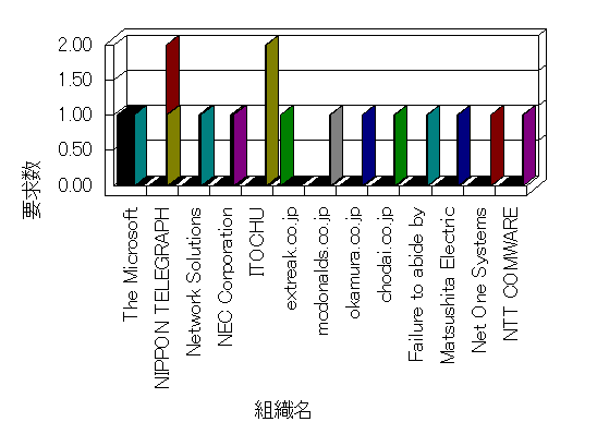組織ユーザーにインターネット接続を提供する、商用または非営利団体、学術・行政機関などの、インターネット ドメイン で識別される団体や組織です。Microsoft Site Server Analysis は同じ組織に登録されたすべてのドメインを 1 つの組織としてグループ化します。ドメインがデータベースで使用できない場合は、1 つのインターネット ドメインが 1 つの組織を識別するのに使用されます。