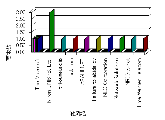 組織ユーザーにインターネット接続を提供する、商用または非営利団体、学術・行政機関などの、インターネット ドメイン で識別される団体や組織です。Microsoft Site Server Analysis は同じ組織に登録されたすべてのドメインを 1 つの組織としてグループ化します。ドメインがデータベースで使用できない場合は、1 つのインターネット ドメインが 1 つの組織を識別するのに使用されます。