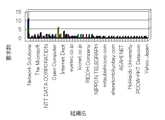 組織ユーザーにインターネット接続を提供する、商用または非営利団体、学術・行政機関などの、インターネット ドメイン で識別される団体や組織です。Microsoft Site Server Analysis は同じ組織に登録されたすべてのドメインを 1 つの組織としてグループ化します。ドメインがデータベースで使用できない場合は、1 つのインターネット ドメインが 1 つの組織を識別するのに使用されます。