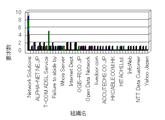 組織ユーザーにインターネット接続を提供する、商用または非営利団体、学術・行政機関などの、インターネット ドメイン で識別される団体や組織です。Microsoft Site Server Analysis は同じ組織に登録されたすべてのドメインを 1 つの組織としてグループ化します。ドメインがデータベースで使用できない場合は、1 つのインターネット ドメインが 1 つの組織を識別するのに使用されます。