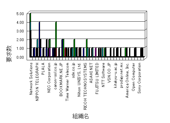 組織ユーザーにインターネット接続を提供する、商用または非営利団体、学術・行政機関などの、インターネット ドメイン で識別される団体や組織です。Microsoft Site Server Analysis は同じ組織に登録されたすべてのドメインを 1 つの組織としてグループ化します。ドメインがデータベースで使用できない場合は、1 つのインターネット ドメインが 1 つの組織を識別するのに使用されます。