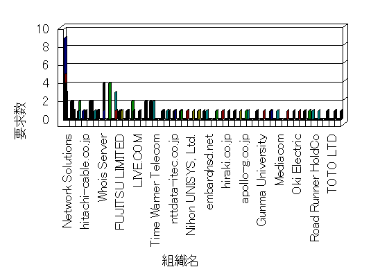 組織ユーザーにインターネット接続を提供する、商用または非営利団体、学術・行政機関などの、インターネット ドメイン で識別される団体や組織です。Microsoft Site Server Analysis は同じ組織に登録されたすべてのドメインを 1 つの組織としてグループ化します。ドメインがデータベースで使用できない場合は、1 つのインターネット ドメインが 1 つの組織を識別するのに使用されます。