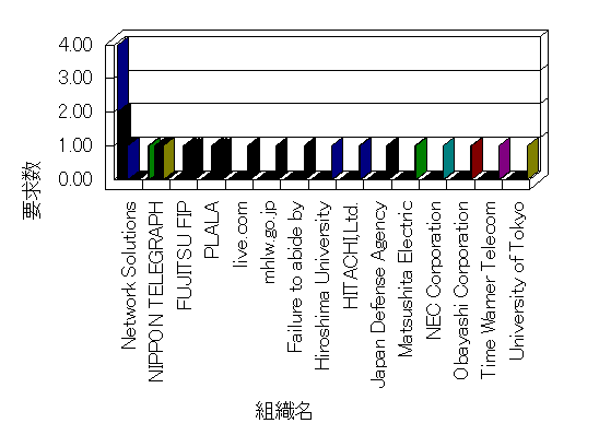 組織ユーザーにインターネット接続を提供する、商用または非営利団体、学術・行政機関などの、インターネット ドメイン で識別される団体や組織です。Microsoft Site Server Analysis は同じ組織に登録されたすべてのドメインを 1 つの組織としてグループ化します。ドメインがデータベースで使用できない場合は、1 つのインターネット ドメインが 1 つの組織を識別するのに使用されます。
