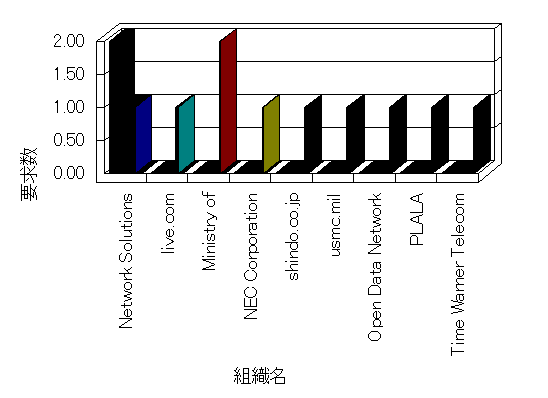 組織ユーザーにインターネット接続を提供する、商用または非営利団体、学術・行政機関などの、インターネット ドメイン で識別される団体や組織です。Microsoft Site Server Analysis は同じ組織に登録されたすべてのドメインを 1 つの組織としてグループ化します。ドメインがデータベースで使用できない場合は、1 つのインターネット ドメインが 1 つの組織を識別するのに使用されます。