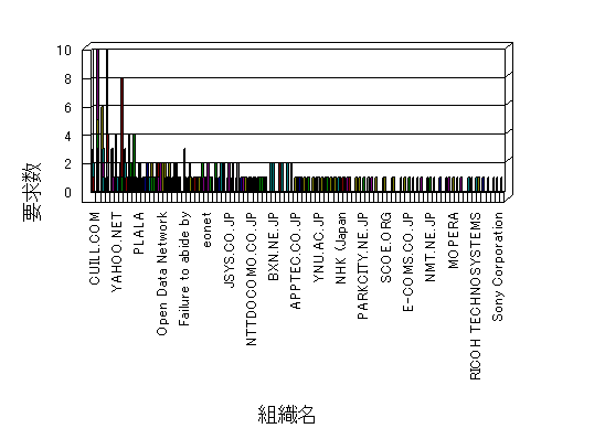 参照組織のサイトには、このサイトにリンクするページがあります。グラフでは、このサイトへのアクセス数に基づいた、上位 10 組織を示します。