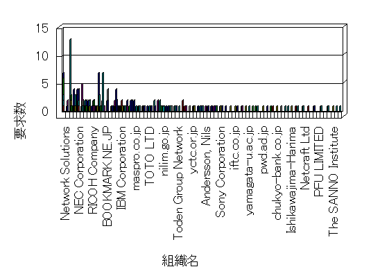 組織ユーザーにインターネット接続を提供する、商用または非営利団体、学術・行政機関などの、インターネット ドメイン で識別される団体や組織です。Microsoft Site Server Analysis は同じ組織に登録されたすべてのドメインを 1 つの組織としてグループ化します。ドメインがデータベースで使用できない場合は、1 つのインターネット ドメインが 1 つの組織を識別するのに使用されます。