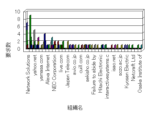 組織ユーザーにインターネット接続を提供する、商用または非営利団体、学術・行政機関などの、インターネット ドメイン で識別される団体や組織です。Microsoft Site Server Analysis は同じ組織に登録されたすべてのドメインを 1 つの組織としてグループ化します。ドメインがデータベースで使用できない場合は、1 つのインターネット ドメインが 1 つの組織を識別するのに使用されます。