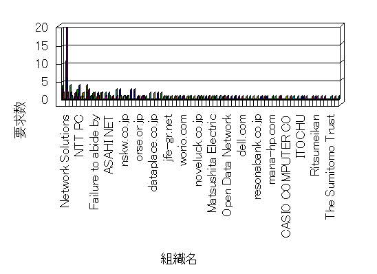 組織ユーザーにインターネット接続を提供する、商用または非営利団体、学術・行政機関などの、インターネット ドメイン で識別される団体や組織です。Microsoft Site Server Analysis は同じ組織に登録されたすべてのドメインを 1 つの組織としてグループ化します。ドメインがデータベースで使用できない場合は、1 つのインターネット ドメインが 1 つの組織を識別するのに使用されます。