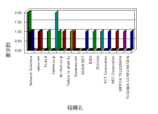 組織ユーザーにインターネット接続を提供する、商用または非営利団体、学術・行政機関などの、インターネット ドメイン で識別される団体や組織です。Microsoft Site Server Analysis は同じ組織に登録されたすべてのドメインを 1 つの組織としてグループ化します。ドメインがデータベースで使用できない場合は、1 つのインターネット ドメインが 1 つの組織を識別するのに使用されます。
