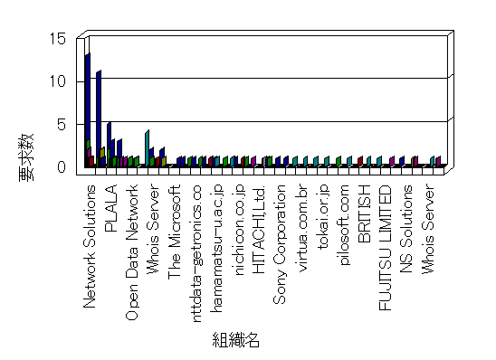 組織ユーザーにインターネット接続を提供する、商用または非営利団体、学術・行政機関などの、インターネット ドメイン で識別される団体や組織です。Microsoft Site Server Analysis は同じ組織に登録されたすべてのドメインを 1 つの組織としてグループ化します。ドメインがデータベースで使用できない場合は、1 つのインターネット ドメインが 1 つの組織を識別するのに使用されます。