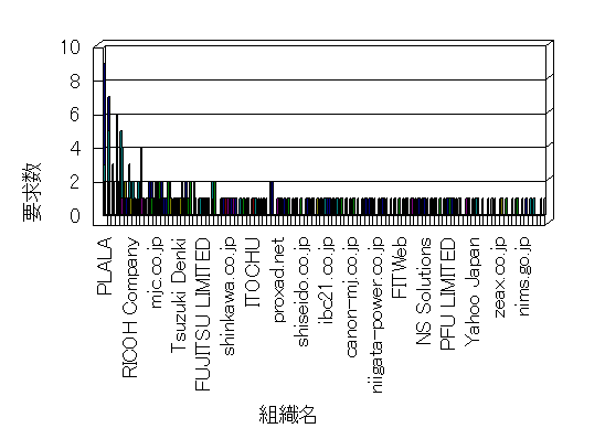 参照組織のサイトには、このサイトにリンクするページがあります。グラフでは、このサイトへのアクセス数に基づいた、上位 10 組織を示します。