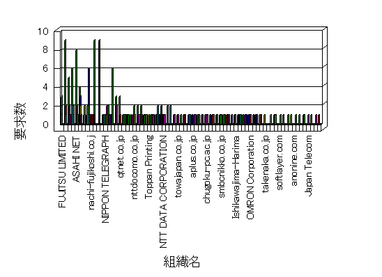 参照組織のサイトには、このサイトにリンクするページがあります。グラフでは、このサイトへのアクセス数に基づいた、上位 10 組織を示します。