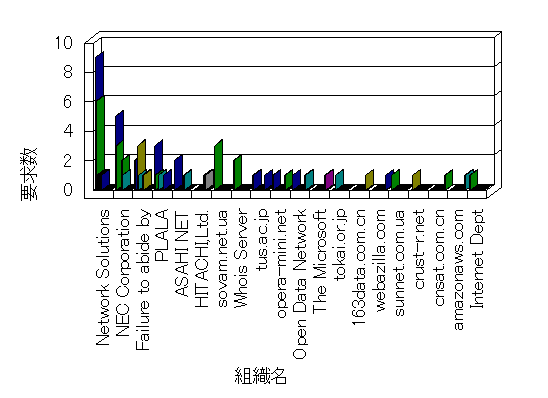 組織ユーザーにインターネット接続を提供する、商用または非営利団体、学術・行政機関などの、インターネット ドメイン で識別される団体や組織です。Microsoft Site Server Analysis は同じ組織に登録されたすべてのドメインを 1 つの組織としてグループ化します。ドメインがデータベースで使用できない場合は、1 つのインターネット ドメインが 1 つの組織を識別するのに使用されます。