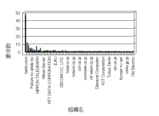 組織ユーザーにインターネット接続を提供する、商用または非営利団体、学術・行政機関などの、インターネット ドメイン で識別される団体や組織です。Microsoft Site Server Analysis は同じ組織に登録されたすべてのドメインを 1 つの組織としてグループ化します。ドメインがデータベースで使用できない場合は、1 つのインターネット ドメインが 1 つの組織を識別するのに使用されます。