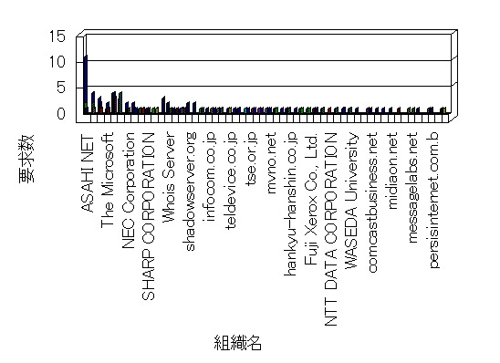 組織ユーザーにインターネット接続を提供する、商用または非営利団体、学術・行政機関などの、インターネット ドメイン で識別される団体や組織です。Microsoft Site Server Analysis は同じ組織に登録されたすべてのドメインを 1 つの組織としてグループ化します。ドメインがデータベースで使用できない場合は、1 つのインターネット ドメインが 1 つの組織を識別するのに使用されます。